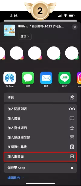 點擊開啟後向下滑,找到加入主畫面後點擊