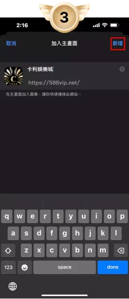 點擊新增,即可增加卡利官網至手機主頁面